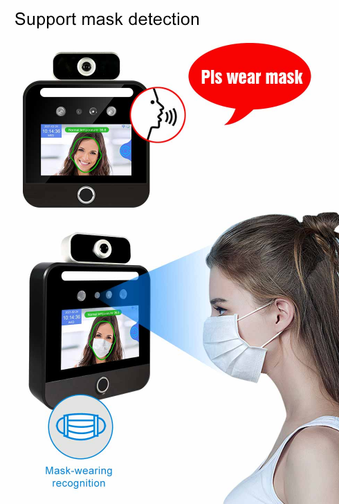 Non contact temperature measurement face recognition access control system, temperature detection distance 0.5 meter, temperature detection error 0.5 degree, temperature detection minimun unit 0.01 degree
